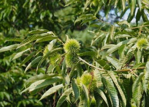 板栗是一種綠葉大喬木植物,大多生長在平地至海拔2800米山地,我國板栗的主要產區有河北、山東、河南、江蘇、貴州等省區。板栗屬于殼斗科植物,適應能力很強,但對于土壤的酸堿度比較敏感,適宜在酸堿度在4.5-7的酸性條件下生長,植株喜溫,適宜生長的溫度在15℃左右。板栗在我們的生活中主要具有食用價值,含有豐富的胡蘿卜素、氨基酸及鐵、鈣等微量元素,如果經常吃的話,可達到養胃、健脾、補腎、養顏等保健功效。