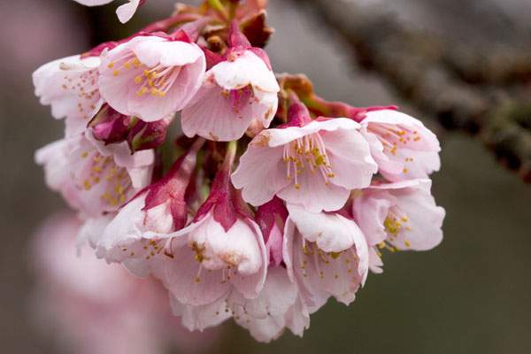 寒櫻(かんざくら)1月中旬開花。寒緋櫻和山櫻的雜交品種。